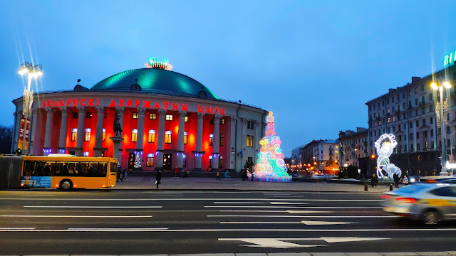 Заодно заехали в парк Янки Купалы, покормили там белок и ворон. А как включили освещение и соответственно все ёлки, так пошли гулять дальше.