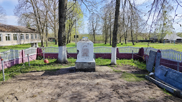 А это памятник ВОВ в городке, находится на реставрации. За историей следят везде.